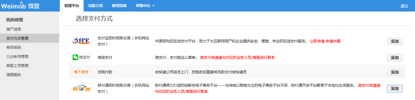 微会员卡和微餐饮的财付通已经接入成功,现已上线,请大家到微盟管理平台的支付方式管理中添加使用!