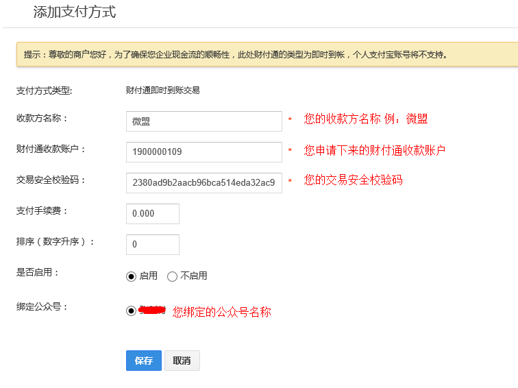 当您成功申请财付通的支付时,财付通会发一封成功申请的邮件到您的邮箱,里面有商户号和密钥(交易安全校验码),请填写到对应的位置后,点击“保存”按钮。