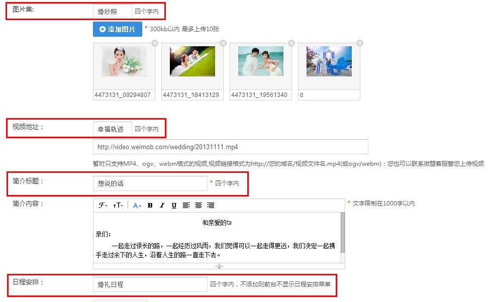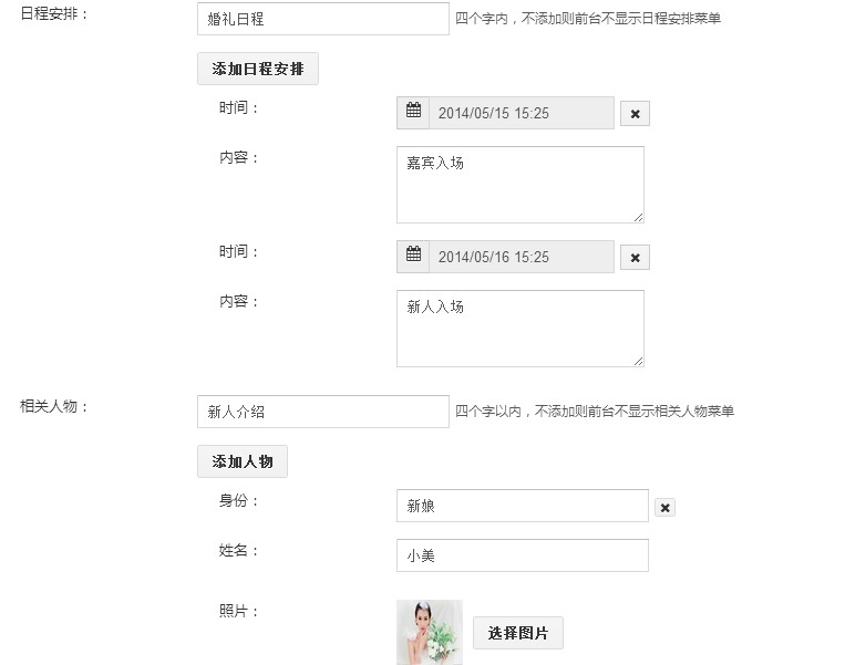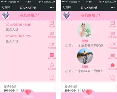 1、 添加日程安排,人物介绍功能,丰富请帖传递的信息量;