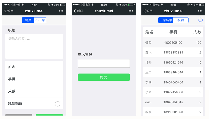 4、 添加短信提醒,商家及用户开启后,系统会提前1天向受邀请人发送提醒短信,避免错过时间;