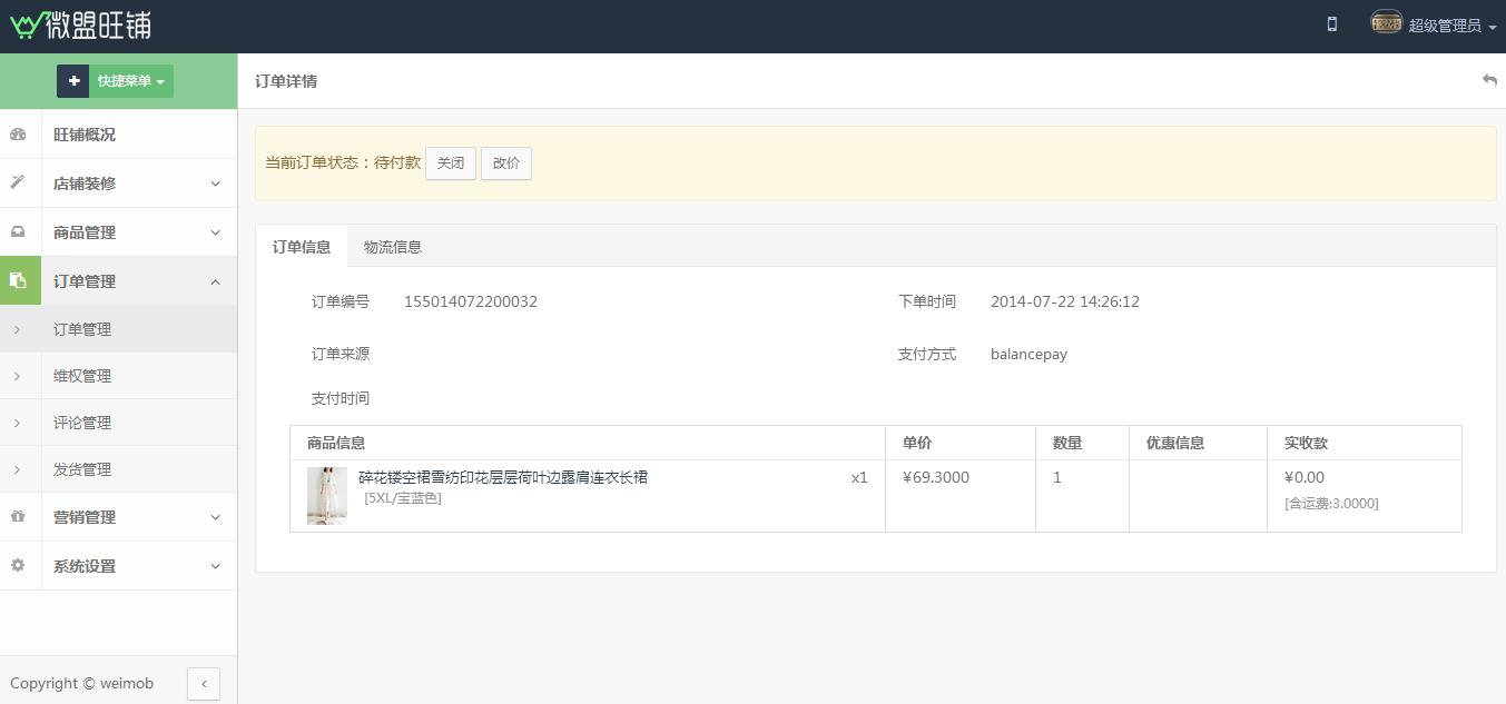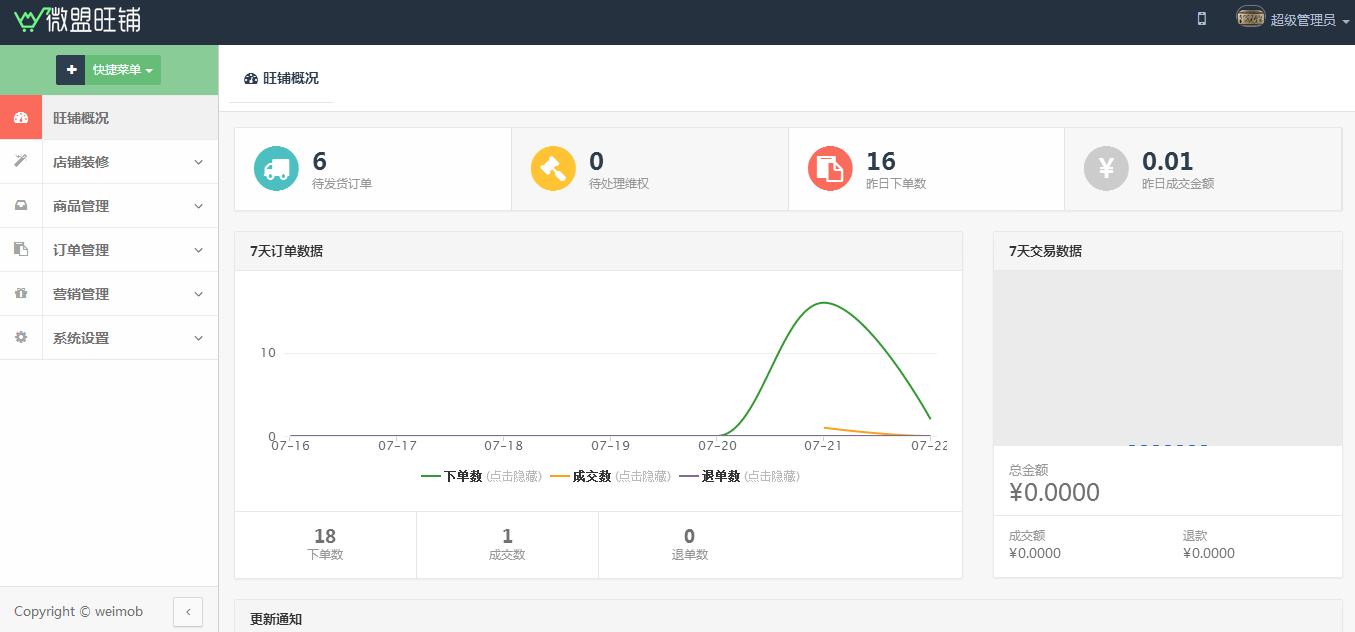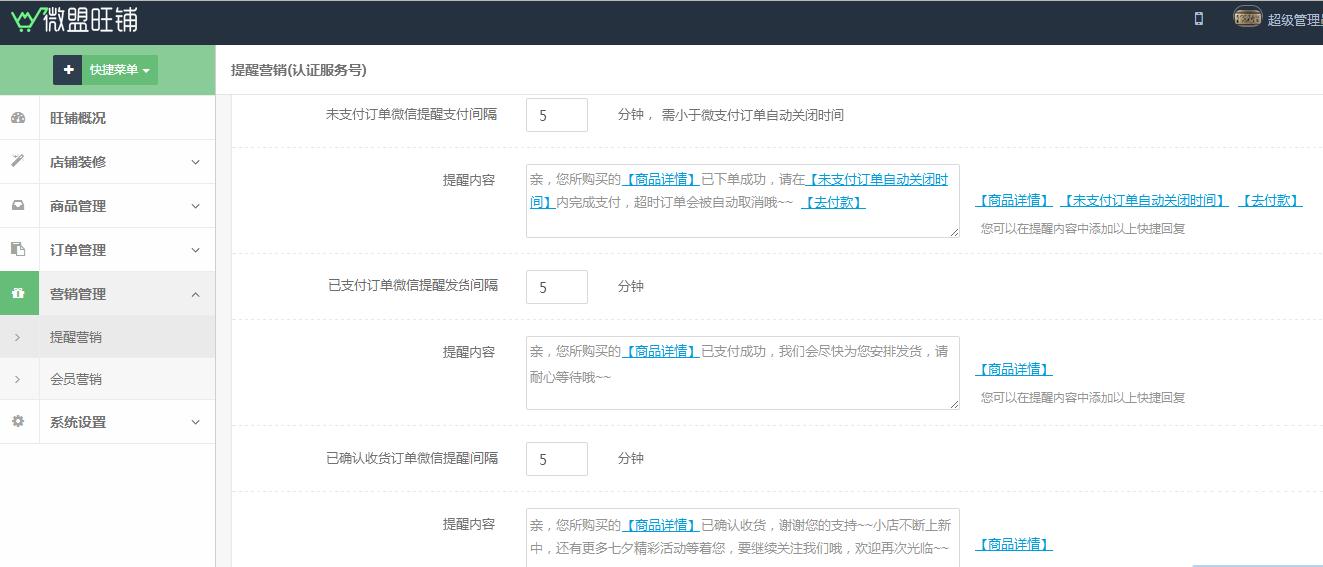 订单提醒可以通过下载微盟APP,可以做到订单实时处理。