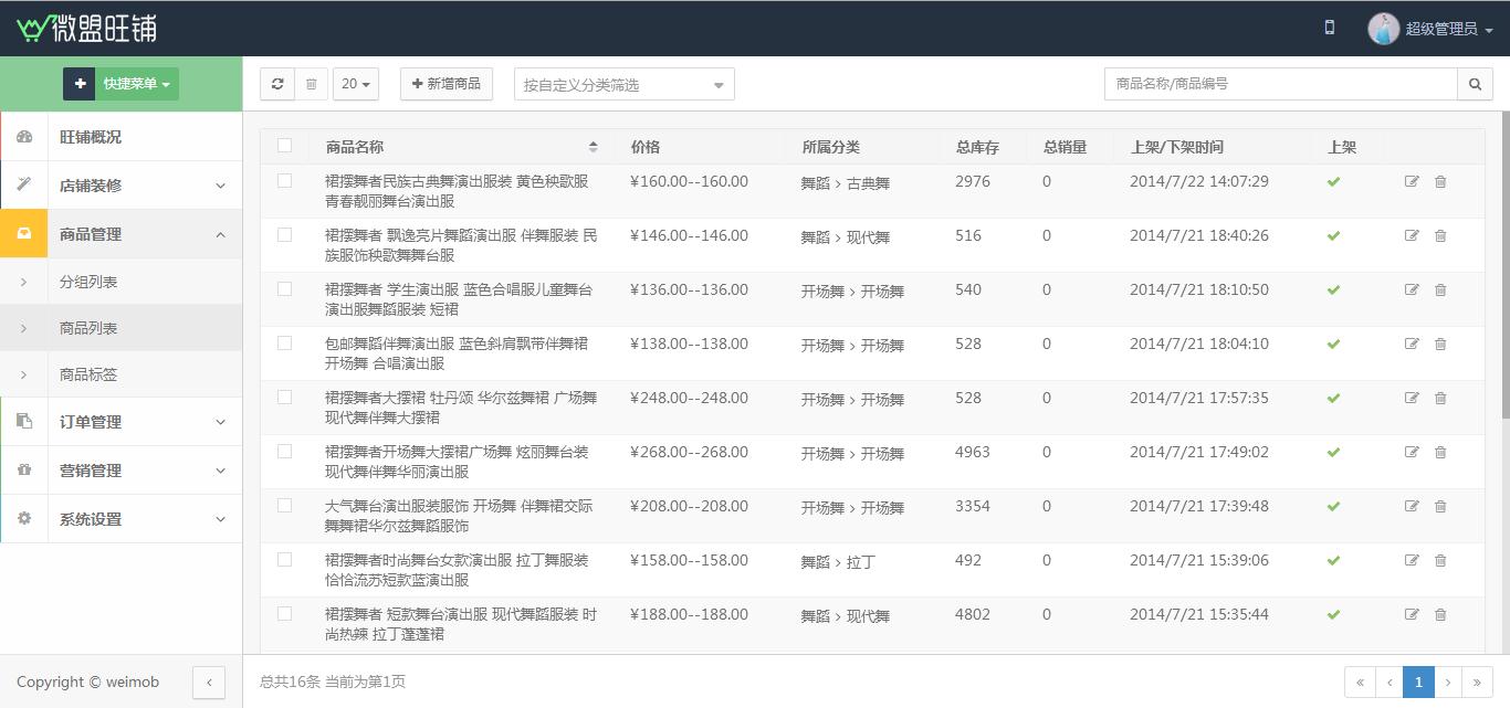 微盟旺铺的商品管理、订单管理系统都要优于现有第三方交易系统,微盟旺铺拥有强大的商品SKU库(近100万),商家无需再去自建商品规格、属性,可以很方便的从淘宝、微信小店迁移,另外微盟旺铺还具有购物车、我的收藏、我的帮购、商品评价、退货维权等功能。