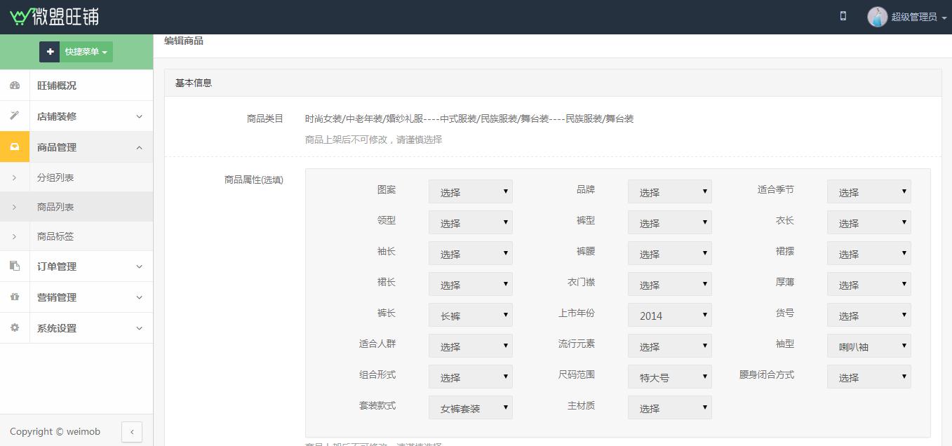 商品类目、属性、规格与微信小店完全同步,可无缝迁移,分类顺序自由变换,规格属性快速添加,自定义标签助力营销。