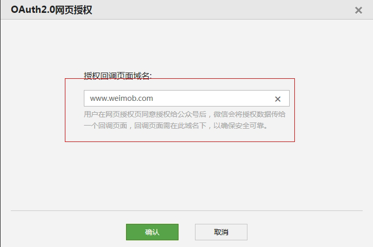 三、 在如下授权回调页面域名填写框中,输入 www.weimob.com。具体如下图所示:
