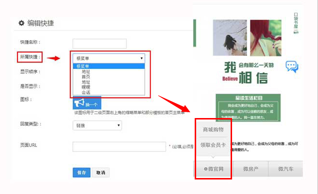 支持添加二级快捷,微信一样的自定义菜单可以直接放到您的微官网,一排菜单入口不够也完全得到解决!