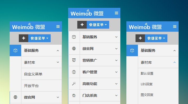 目前的商户中心左侧菜单虽然仅使用1年左右的时间,但随着微盟飞速发展,商户需求的不断增加和新功能不断的上线,问题随之而来,菜单越来越长,操作不够方便的问题越来越突出,为了给广大商户提供一个分类更清晰、操作更便捷、视觉更美观的全新菜单,微盟邀请了数以百计的商户和资深的产品和设计人员进行了全面的探讨和沟通,经过近一个月的设计和开发,现正式推出2014版全新左侧菜单,只为广大商户用的“爽”!