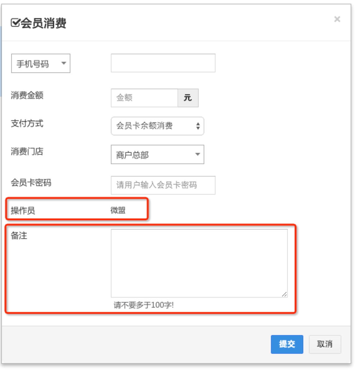 微盟平台对于会员的消费、充值、修改积分等交易的操作员均不允许手动填写啦!系统会直接读取登录平台的账号,对于出现异常交易无法对账的问题立即得到解决,不用再担心员工胡乱填写,找不到具体相关人啦!