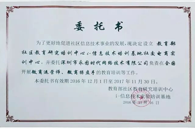 并且在2016年11月16日委托深圳市永图时代网络技术有限公司在全国范围内开展教育培训工作。